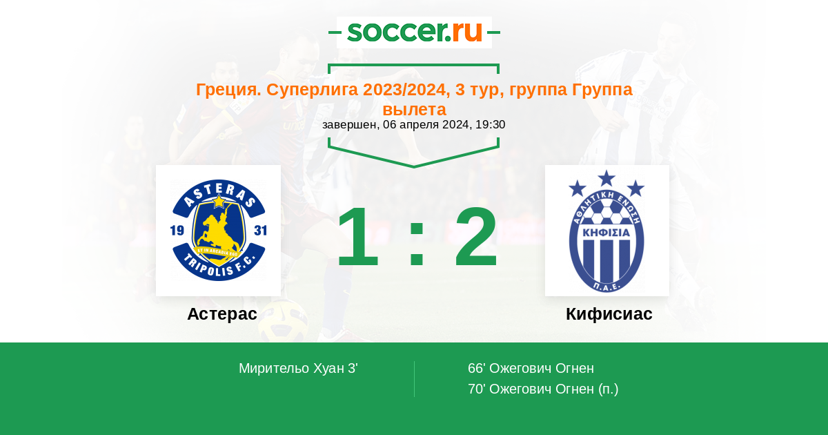 70' (1:2) Ожегович Огнен (9)