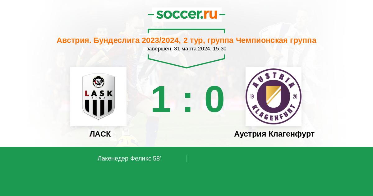 58' (1:0) Лакенедер Феликс (33) (Хорват Саша (30))