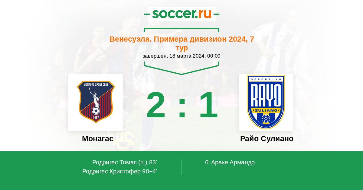 90+4' (2:1) Родригес Кристофер (14) (Гонсалес Оскар (19))
