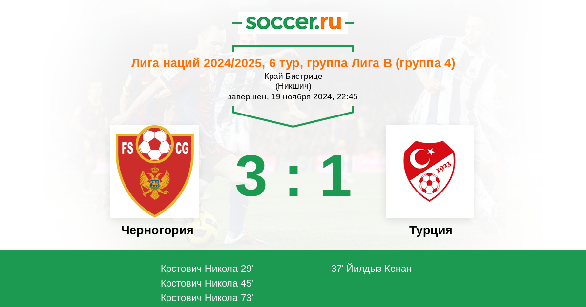45' (2:1) Крстович Никола (11) (Янкович Марко (8))