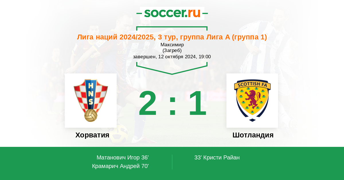 В этом матче встречаются два абсолютно разных по классу и уровню игроков коллектива. Поэтому трудно ожидать от шотландской сборной каких-то реальных проблем для хорватов и более одного мяча в хозяйские ворота