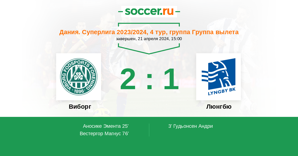 76' (2:1) Вестергор Магнус (28) (Ануембе Даниэль (24))