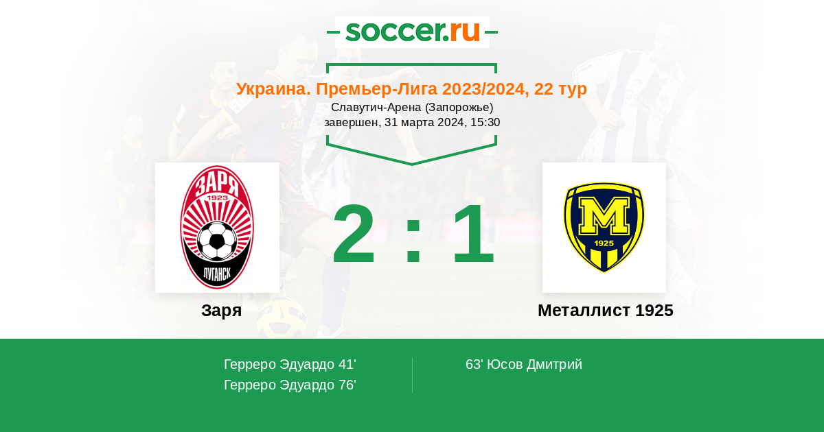 76' (2:1) Герреро Эдуардо (39) (Яцук Александр (5))