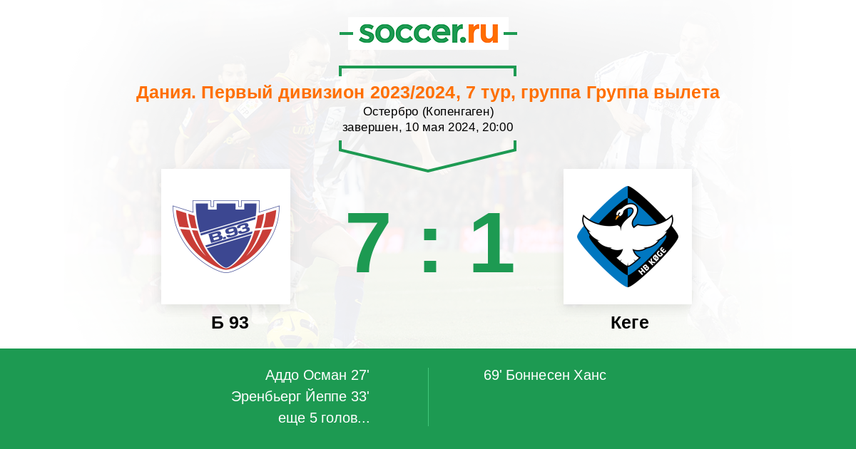 69' (5:1) Боннесен Ханс (4) (Йенсен Кристиан (10))