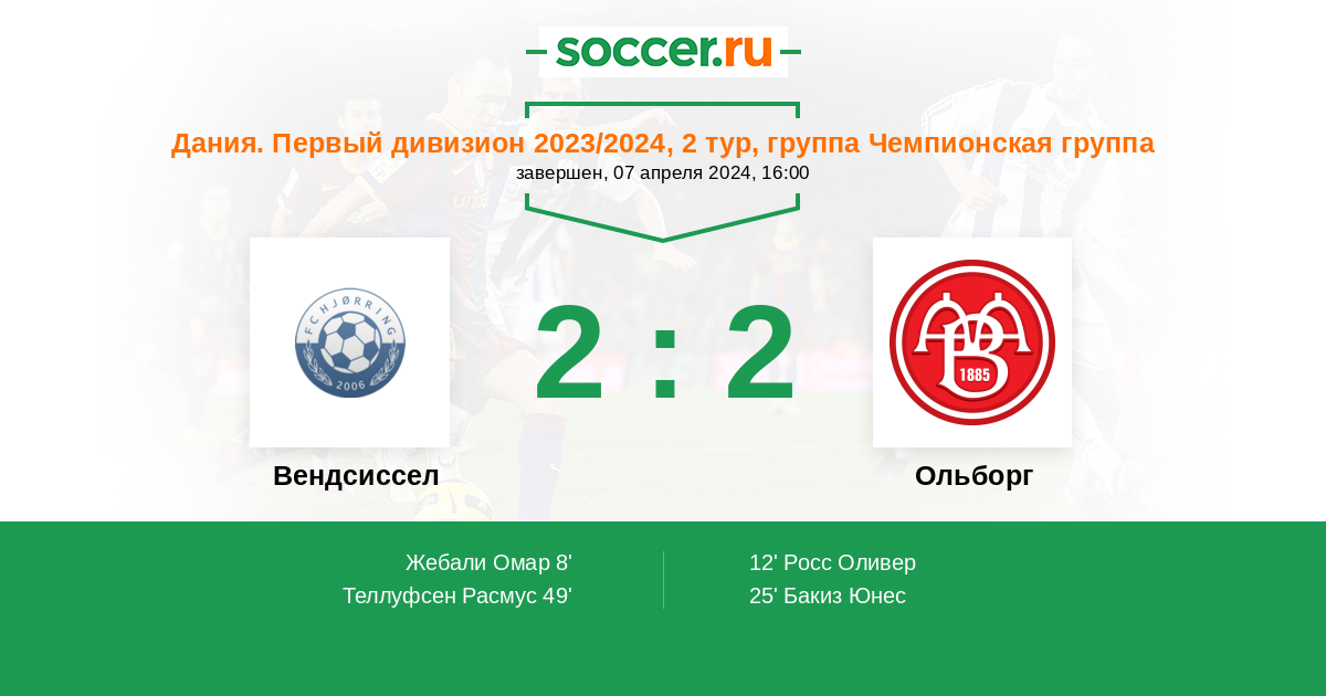 49' (2:2) Теллуфсен Расмус (22) (Хааруп Матиас (27))