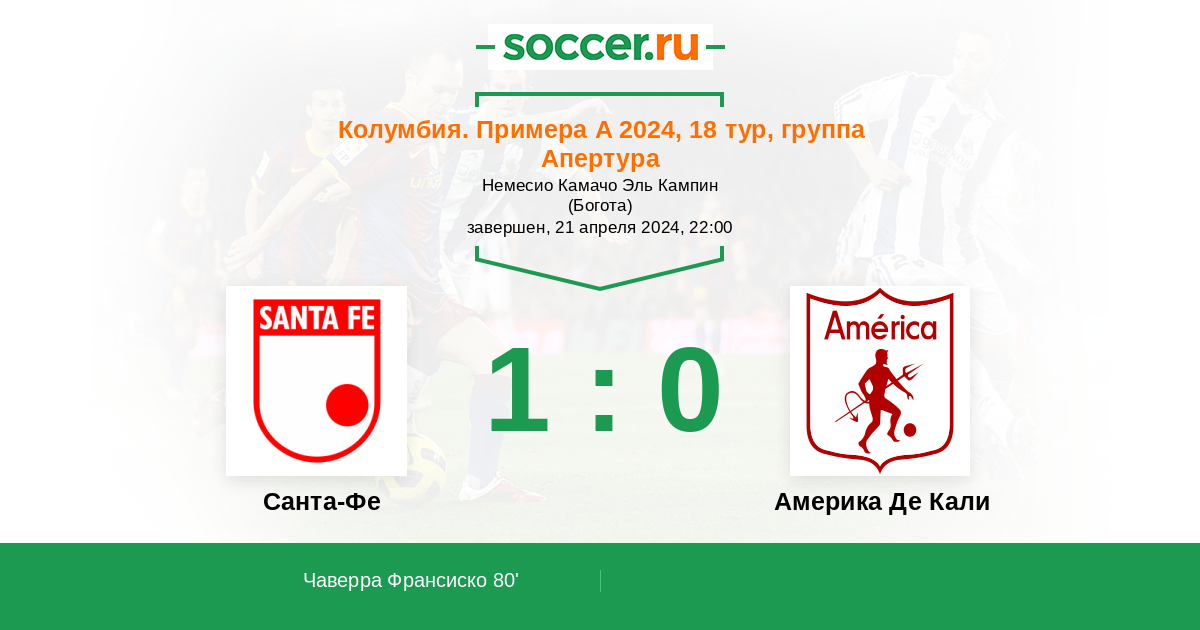 80' (1:0) Чаверра Франсиско (13) (Мелендес Джон (18))