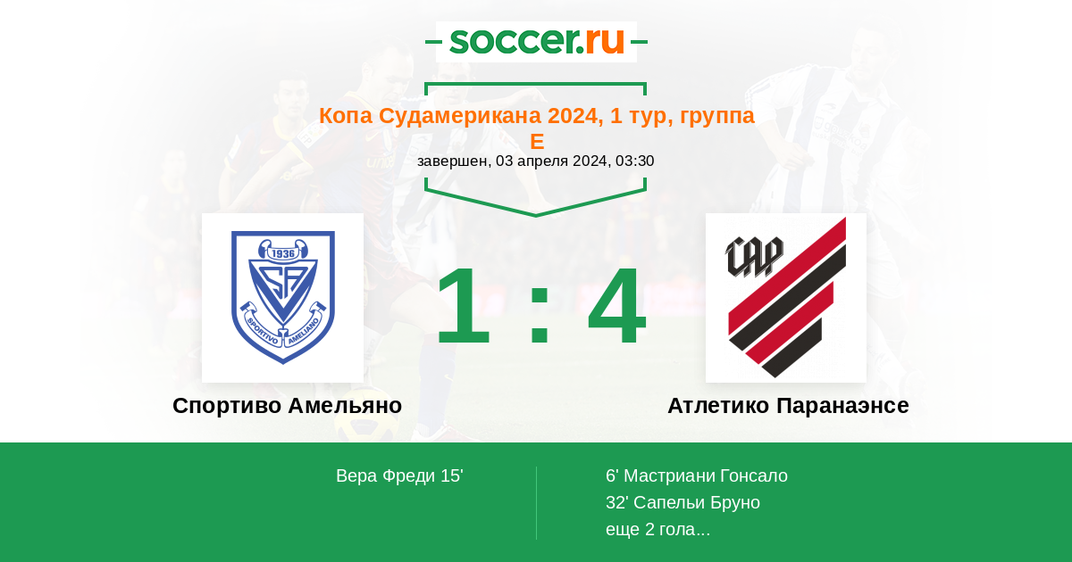 6' (0:1) Мастриани Гонсало (9) (Сапельи Бруно (10))