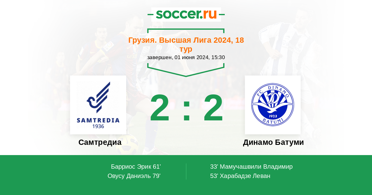 33' (0:1) Мамучашвили Владимир (17)