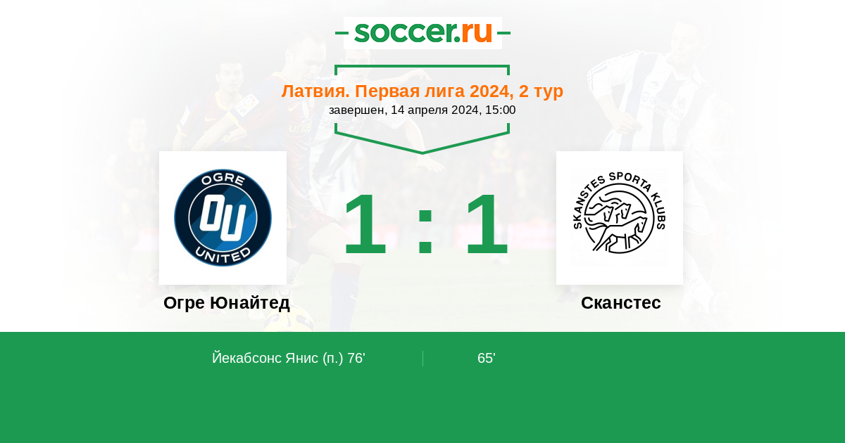Йекабсонс Янис 1:1(П) 76’