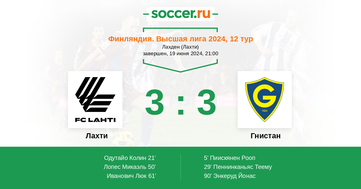 21' (1:1) Одутайо Колин (7) (Пукко Аксели (29))