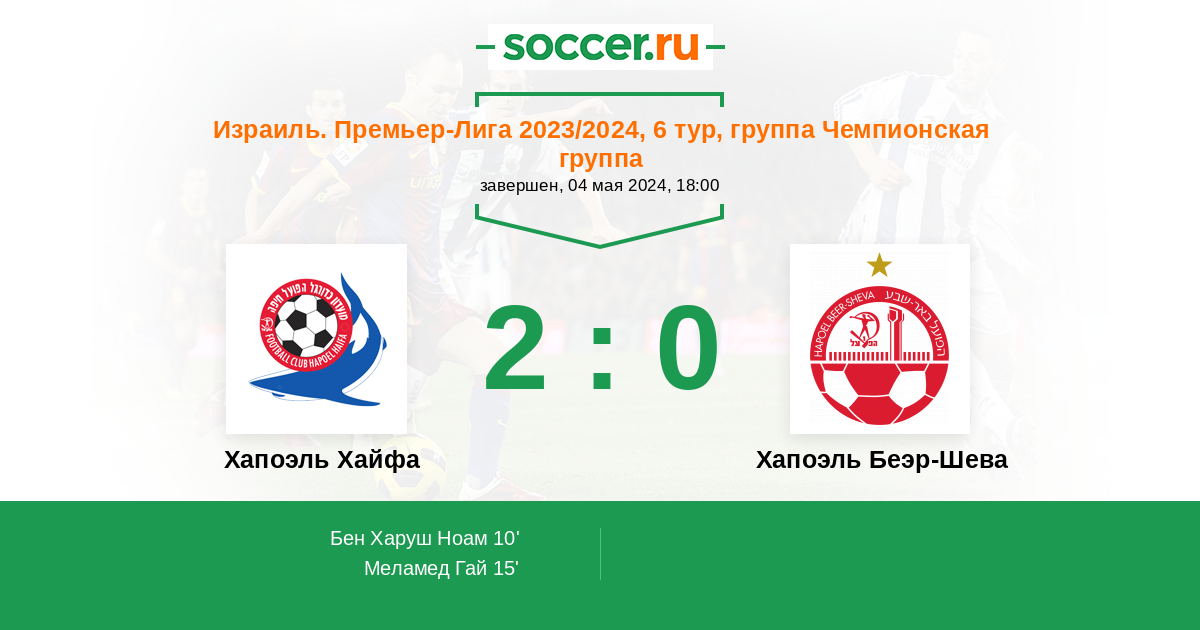 10' (1:0) Бен Харуш Ноам (2) (Камара Мохаммед (7))