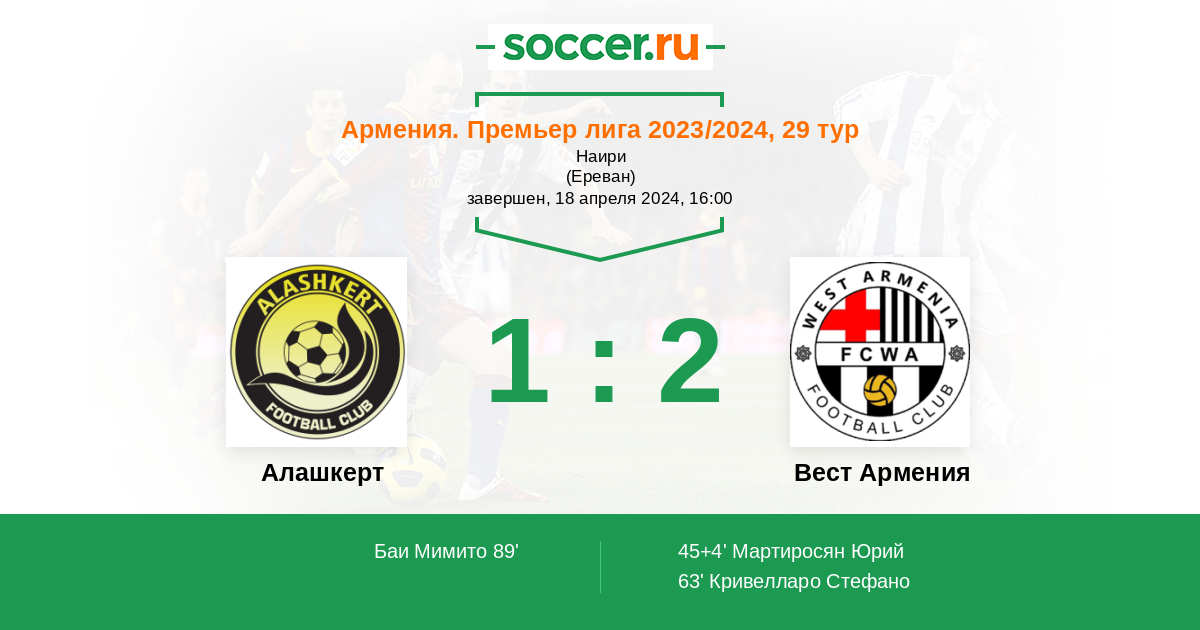 45+4' (0:1) Мартиросян Юрий