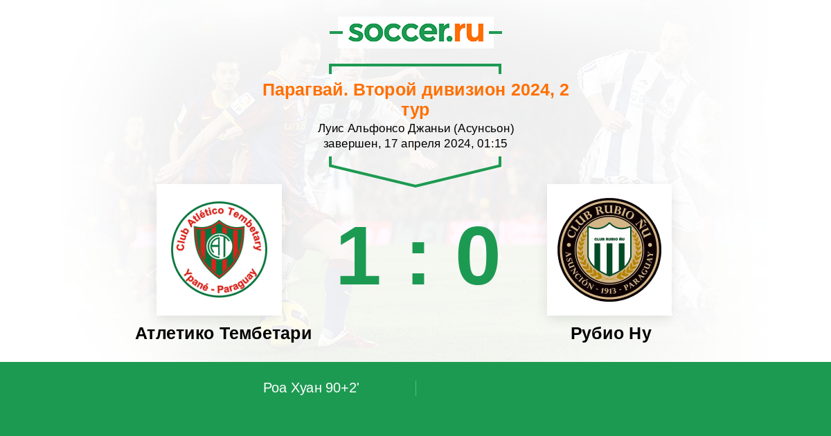 Роа Хуан 1:0 90+2’