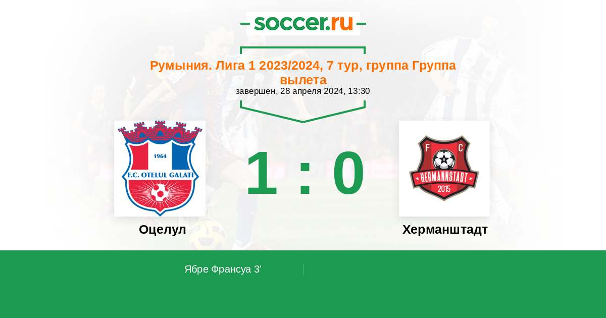 3' (1:0) Ябре Франсуа (15) (Бодиштяну Стефан (20))