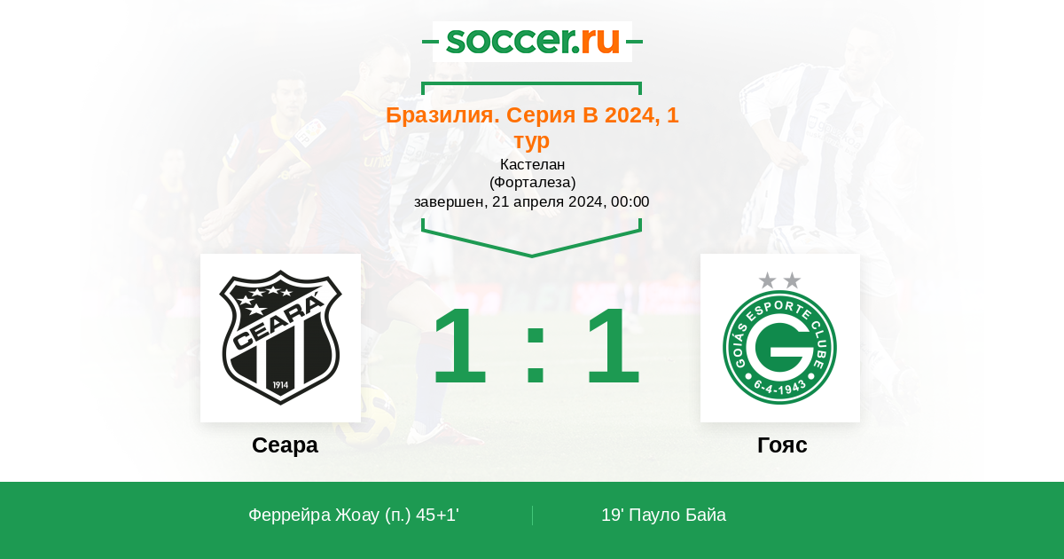 19' (0:1) Пауло Байа (7) (Гальярдо Тиаго (33))