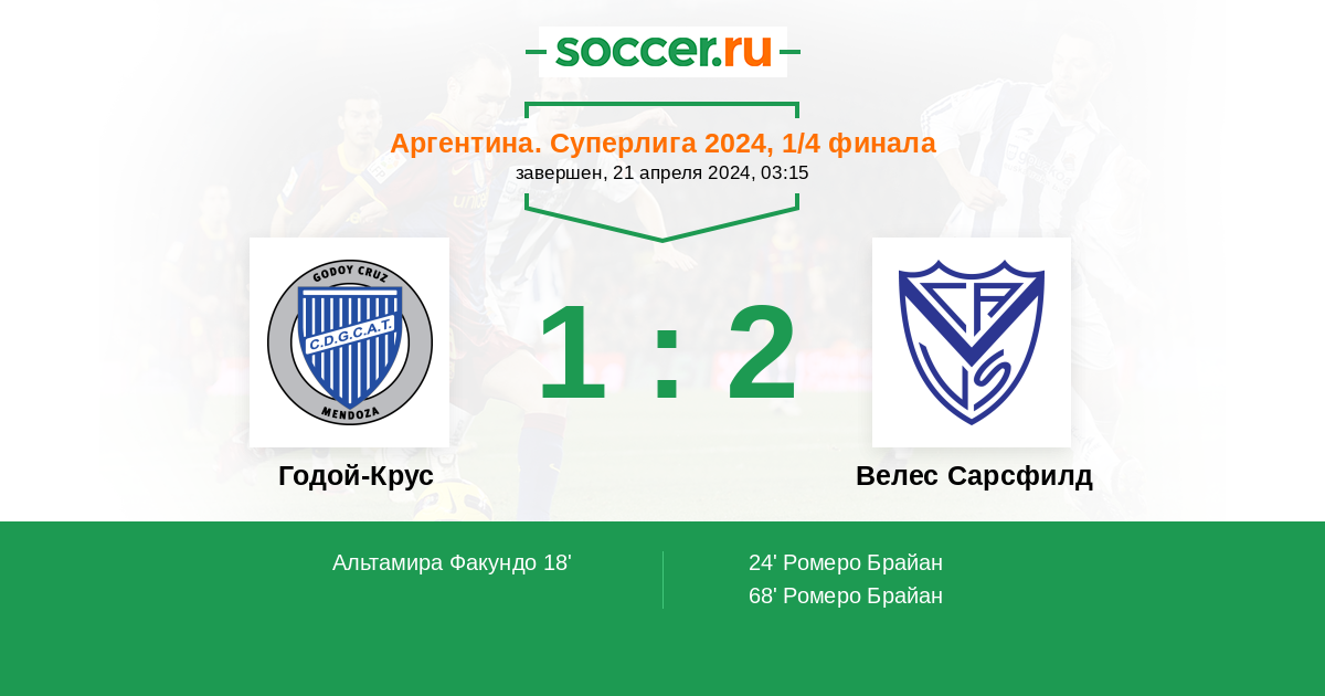 68' (1:2) Ромеро Брайан (9) (Пиццини Франциско (20))