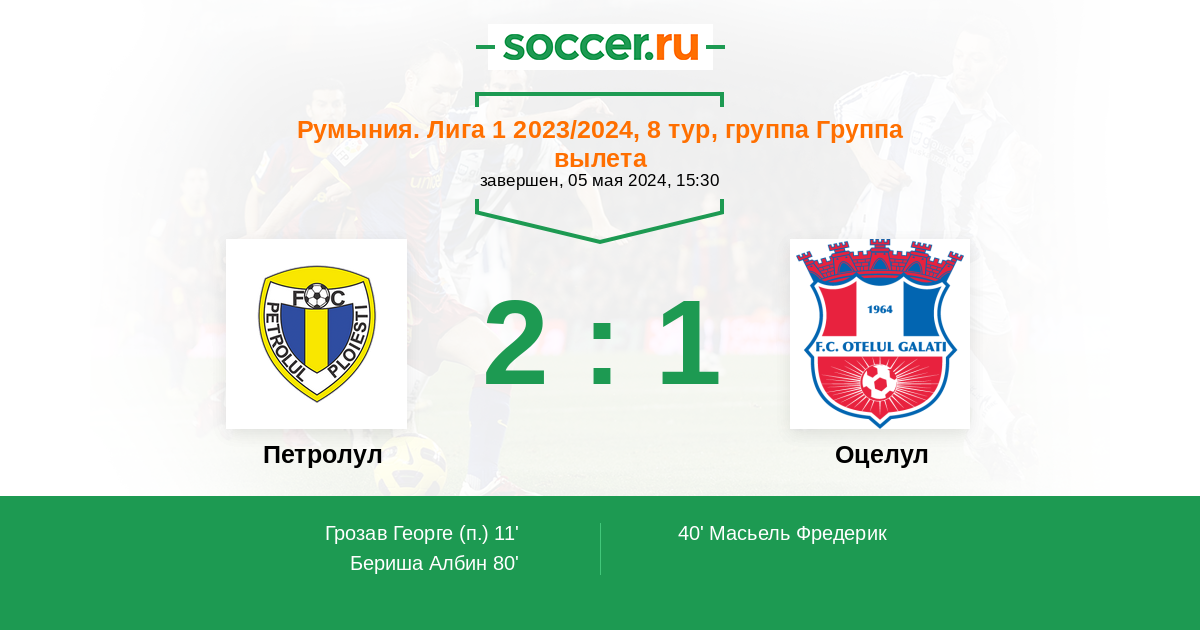 80' (2:1) Бериша Албин (9) (Тичу Валентин (5))