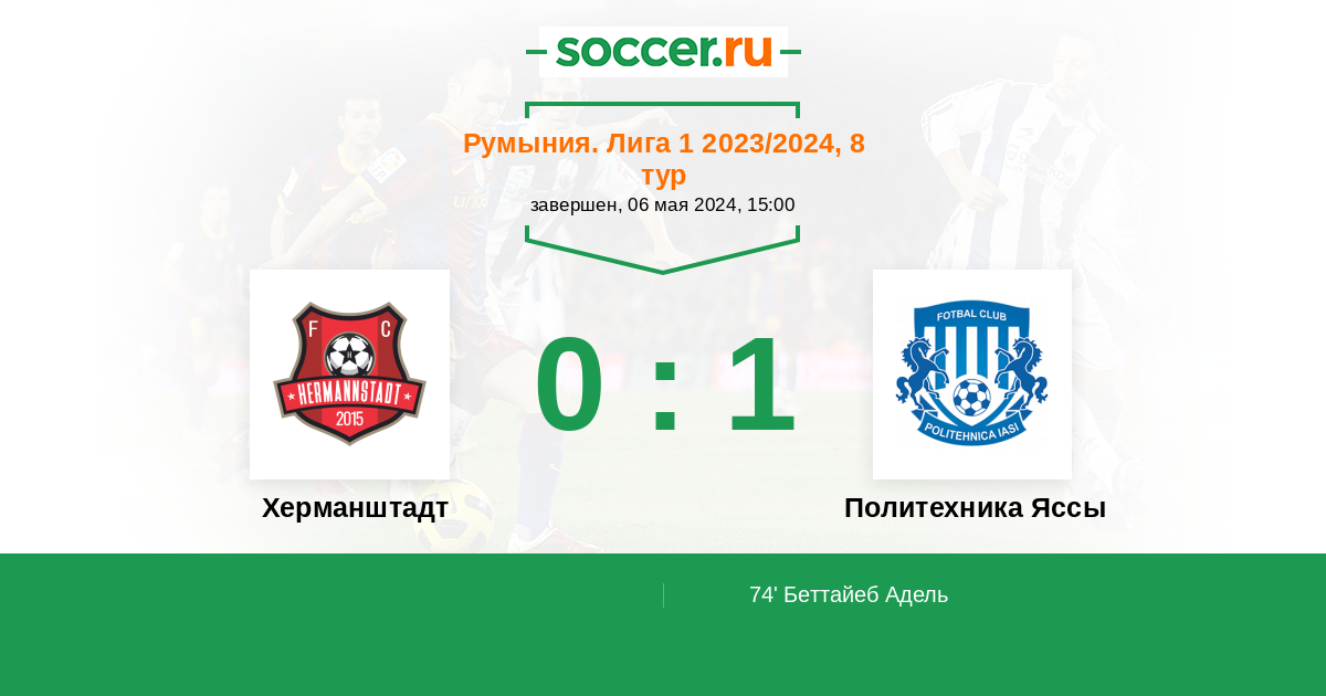 74' (0:1) Беттайеб Адель (7) (Роман Алин (10))