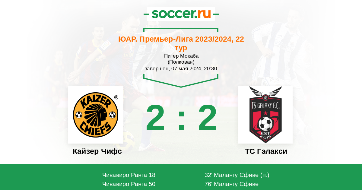 76' (2:2) Малангу Сфиве (11) (Видаль Игор (20))