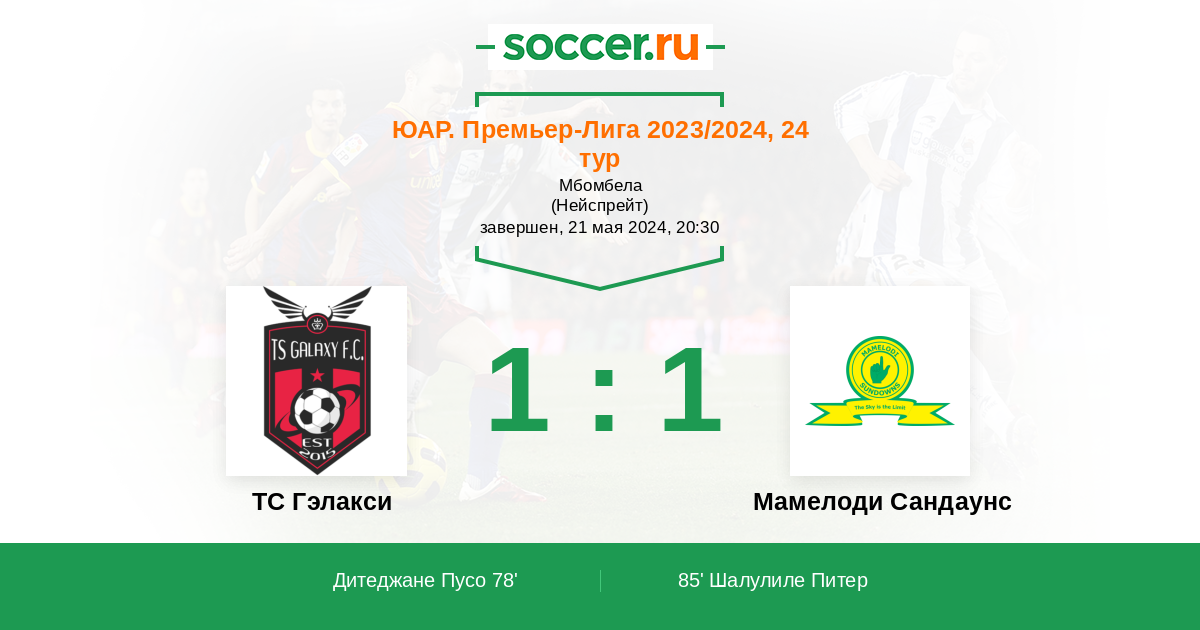 85' (1:1) Шалулиле Питер (38) (Модиба Мафоса (17))