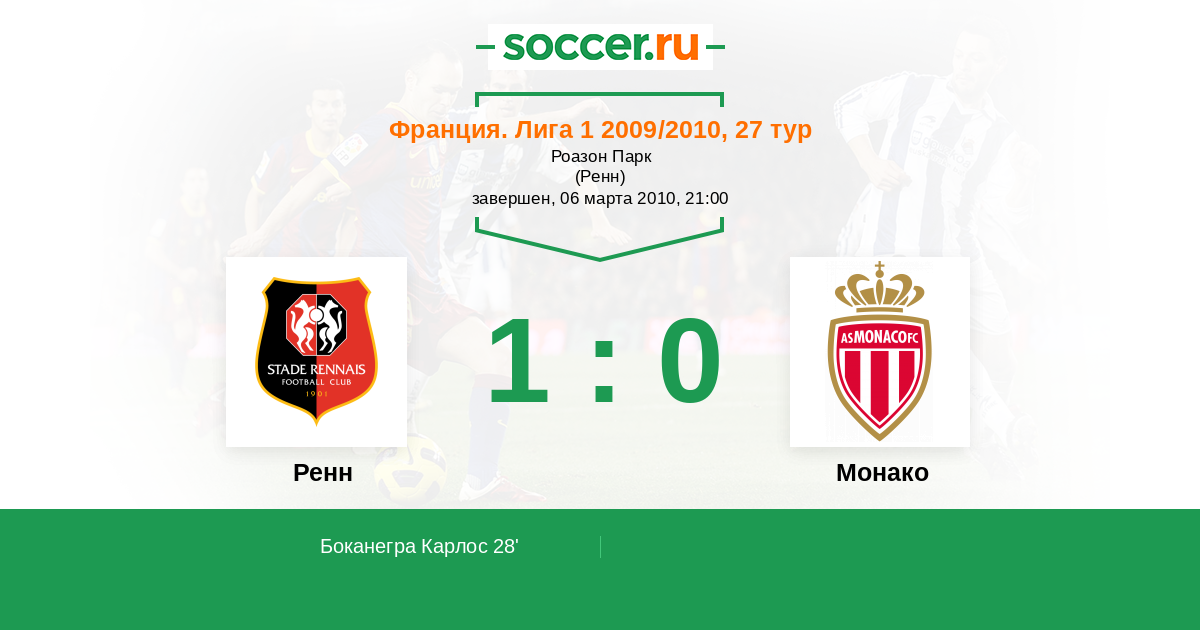 28' (1:0) Боканегра Карлос (3) (Марво Сильвен (8))