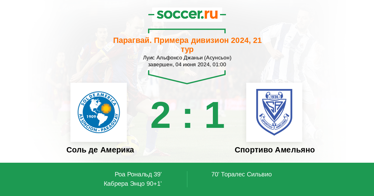 39' (1:0) Роа Рональд (19) (Ортиз Луис (11))