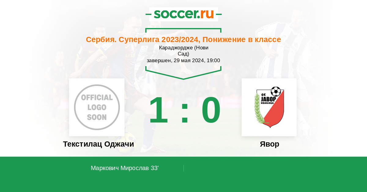 33' (1:0) Маркович Мирослав (28)