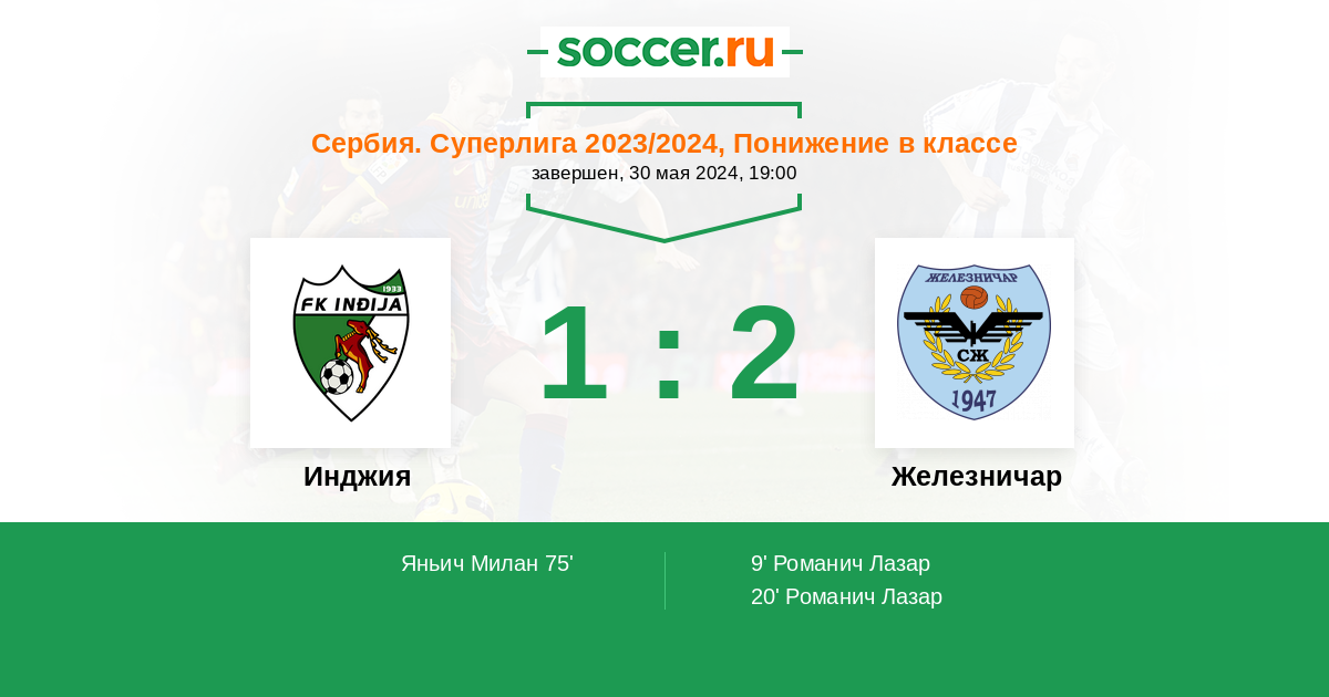 20' (0:2) Романич Лазар (9) (Хаждин Стефан (14))