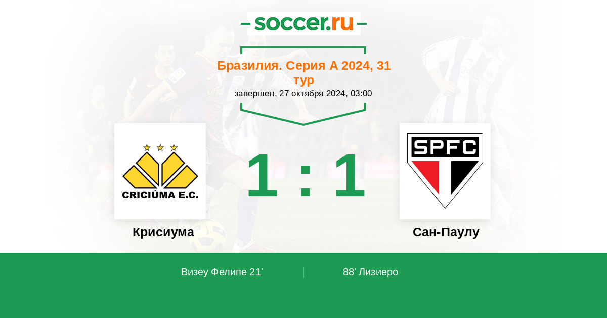 88' (1:1) Лизиеро (26) (Кальери Хонатан (9))