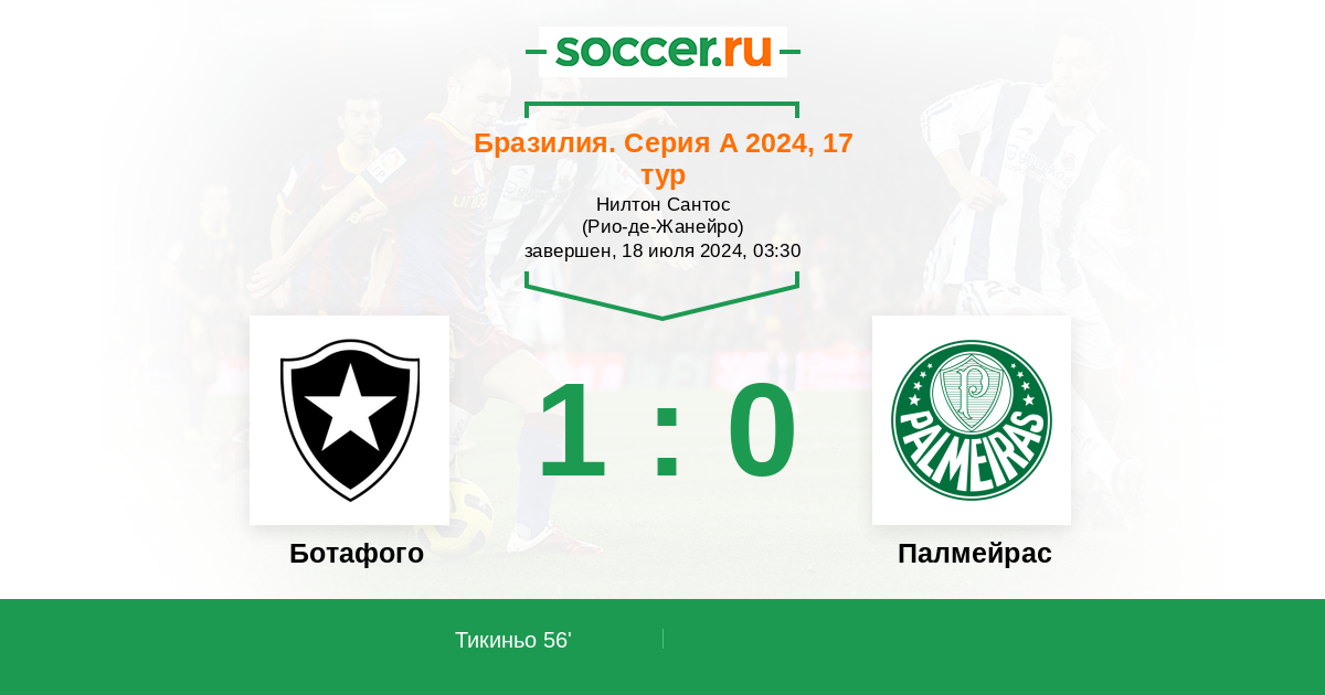 56' (1:0) Тикиньо (9) (Луис Энрике (7))
