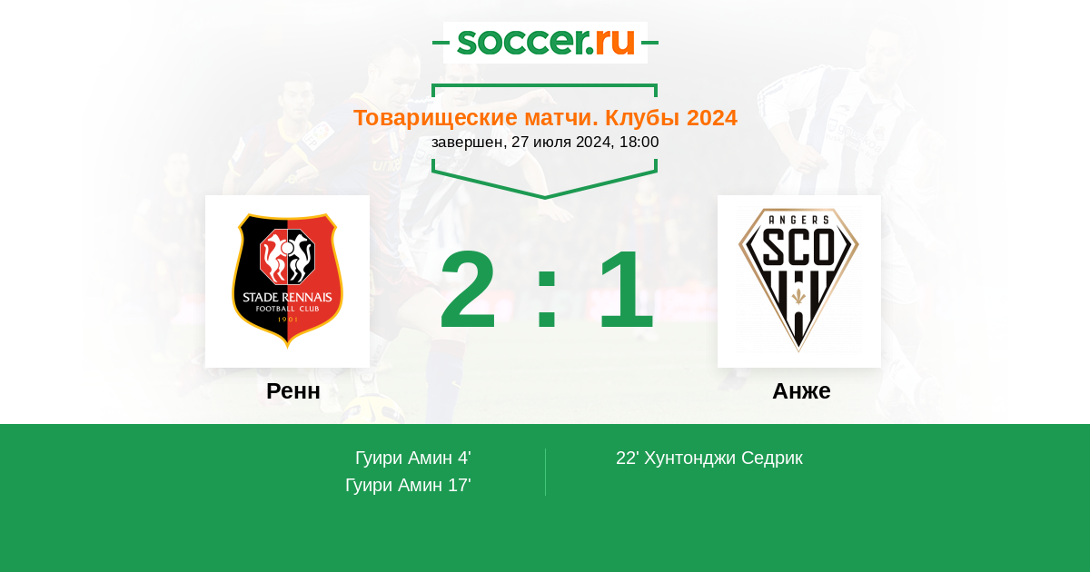 4' (1:0) Гуири Амин (Буриго Бенжамен)