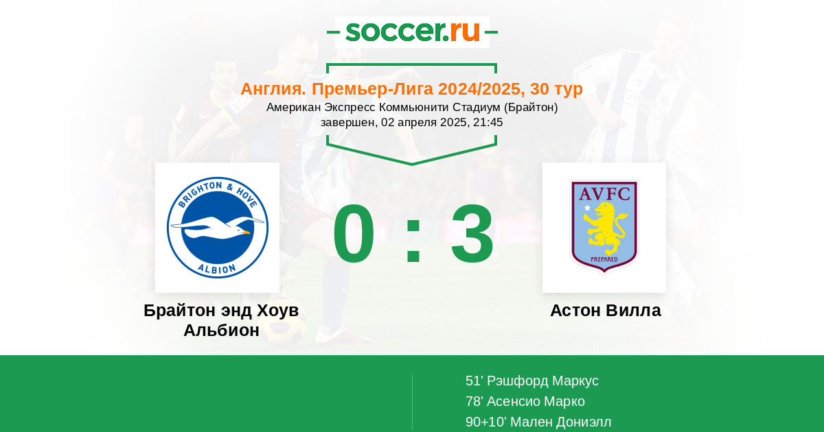 В матче английской премьер лиги между Брайтоном и Астон Виллой не вижу явного фаворита, команды равны и в турнирной таблице, и в первом круге разошлись миром, поэтому рискну предположить что и в этот раз будет ничья