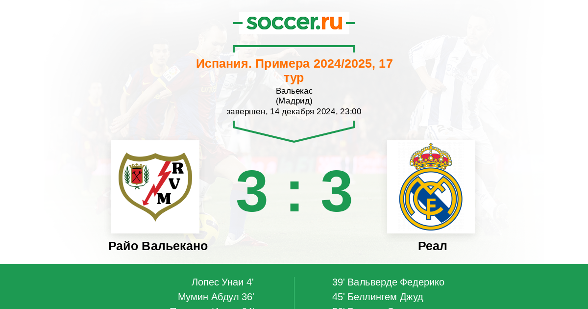 В предстоящем матче 17 - го тура испанской Ла Лиги между командами Райо Вальекано и Реал Мадрид , фаворитом на победу является команда гостей Реал Мадрид. Но Райо Вальекано тоже обычно хорошо настраивается на матчи против Реала