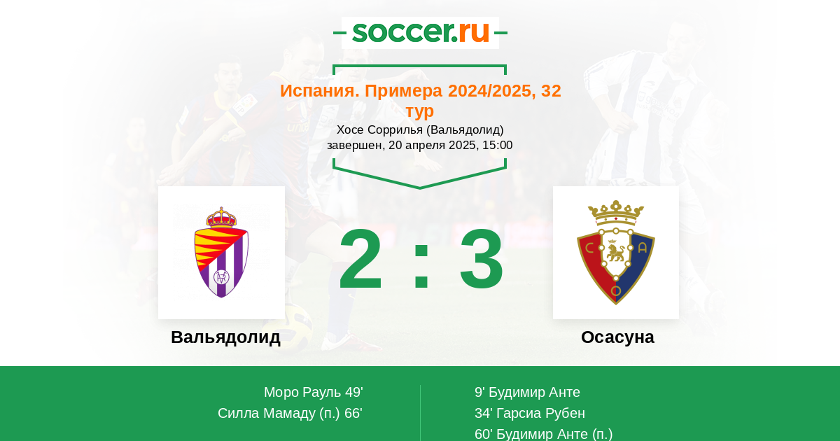 Стадион Хосе Соррилья (Вальядолид), зрителей: 12230