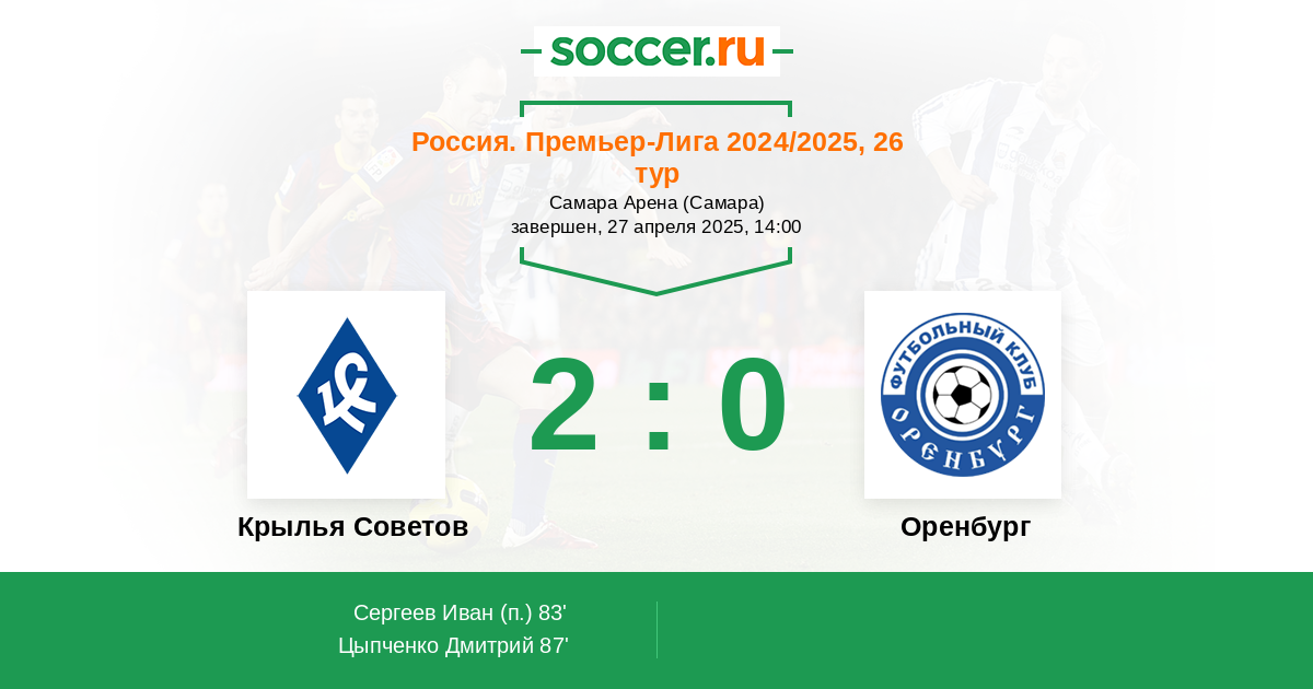 Крылья Советов - Оренбург ! КС выглядят конечно по сильнее и по солиднее и играя дома конечно же будут держать в голове ,что победа в этом матче может сильно обезопасить их от возможных неприятностей . Гости же вообще играют каждый матч , как последний . ТБ .