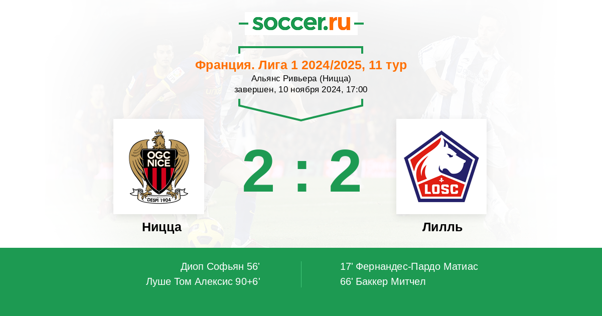 90+6' (2:2) Луше Том Алексис (20) (Гессан Эванн (29))