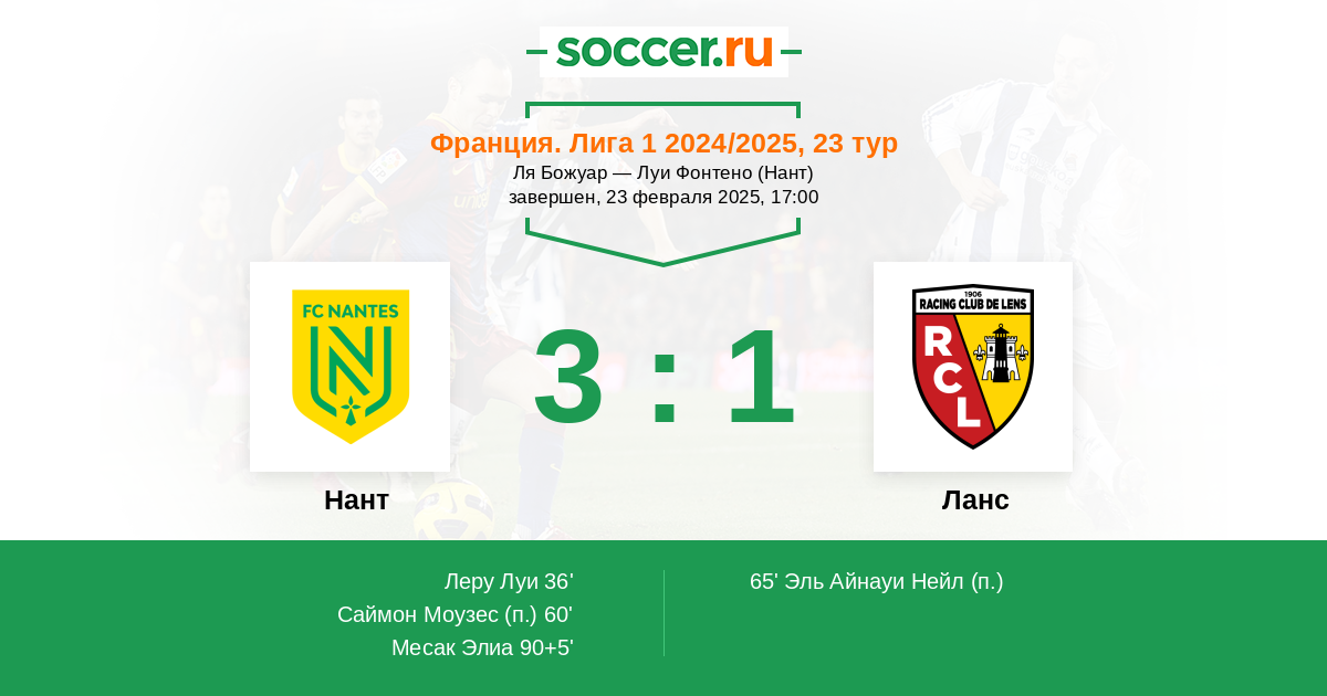 Гол90+5' (3:1) Месак Элиа (17) (Коклен Франсис (13))