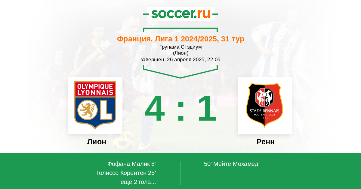 Лион рискует вновь пролететь мимо путевки в Лигу чемпионов. Матч против Ренна может помочь Лиону остаться в числе претендентов.