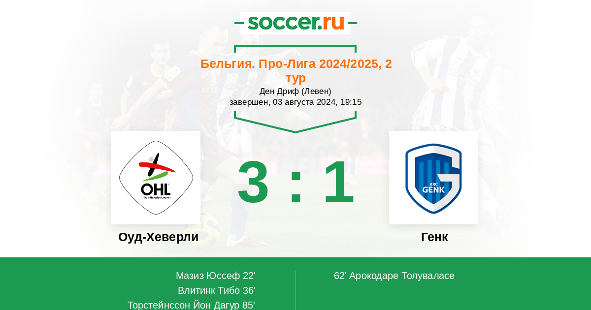 36' (2:0) Влитинк Тибо (77) (Плетинк Эвуд (28))