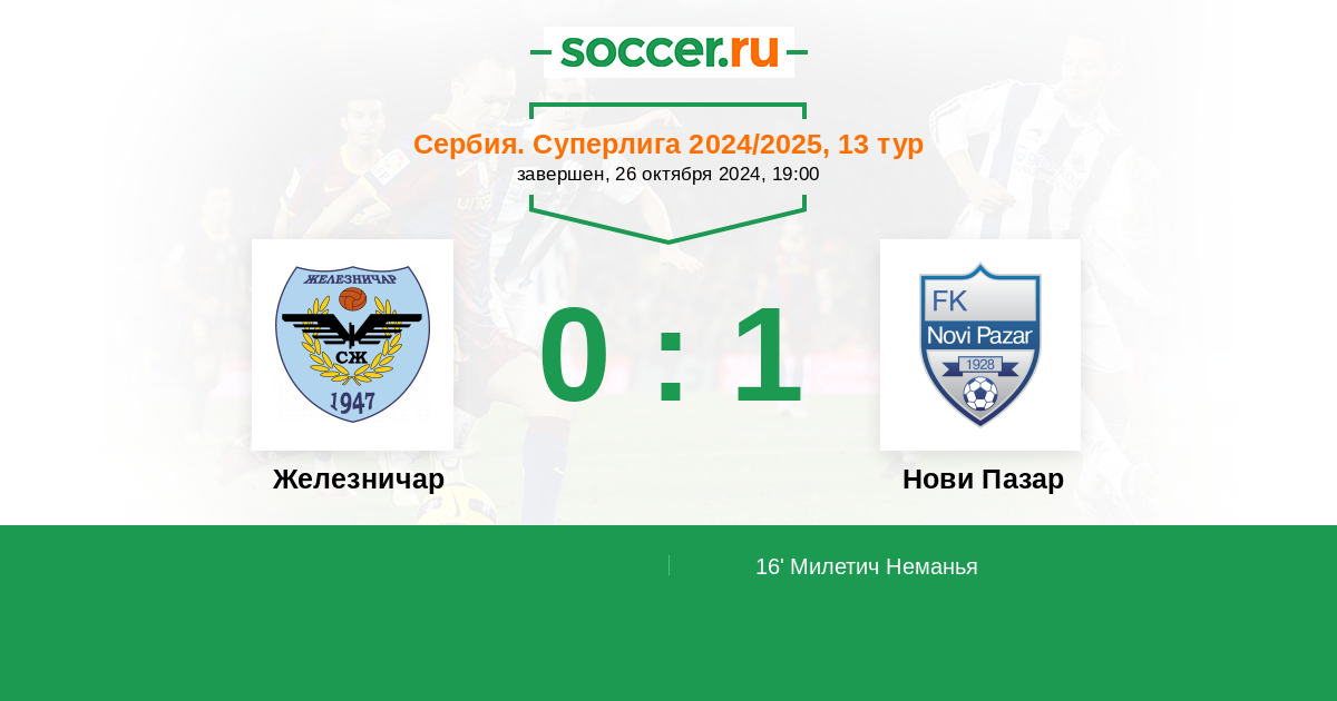 16' (0:1) Милетич Неманья (3)