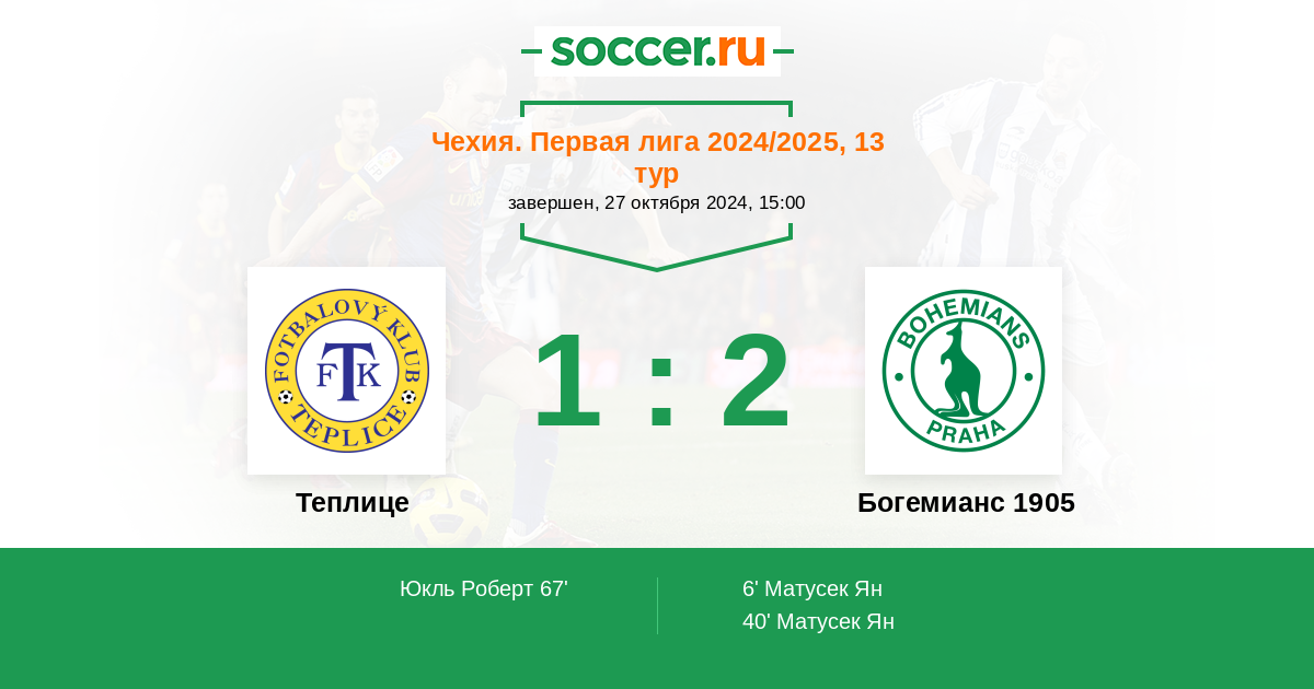 67' (1:2) Юкль Роберт (19) (Вахусек Тадеас (14))