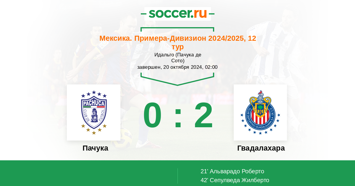 42' (0:2) Сепулведа Жилберто (3) (Альварадо Роберто (25))