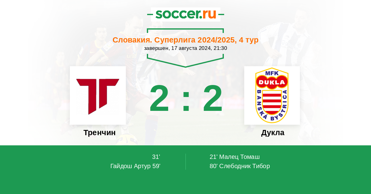 80' (2:2) Слебодник Тибор (9) (Загуменски Тимотей (44))