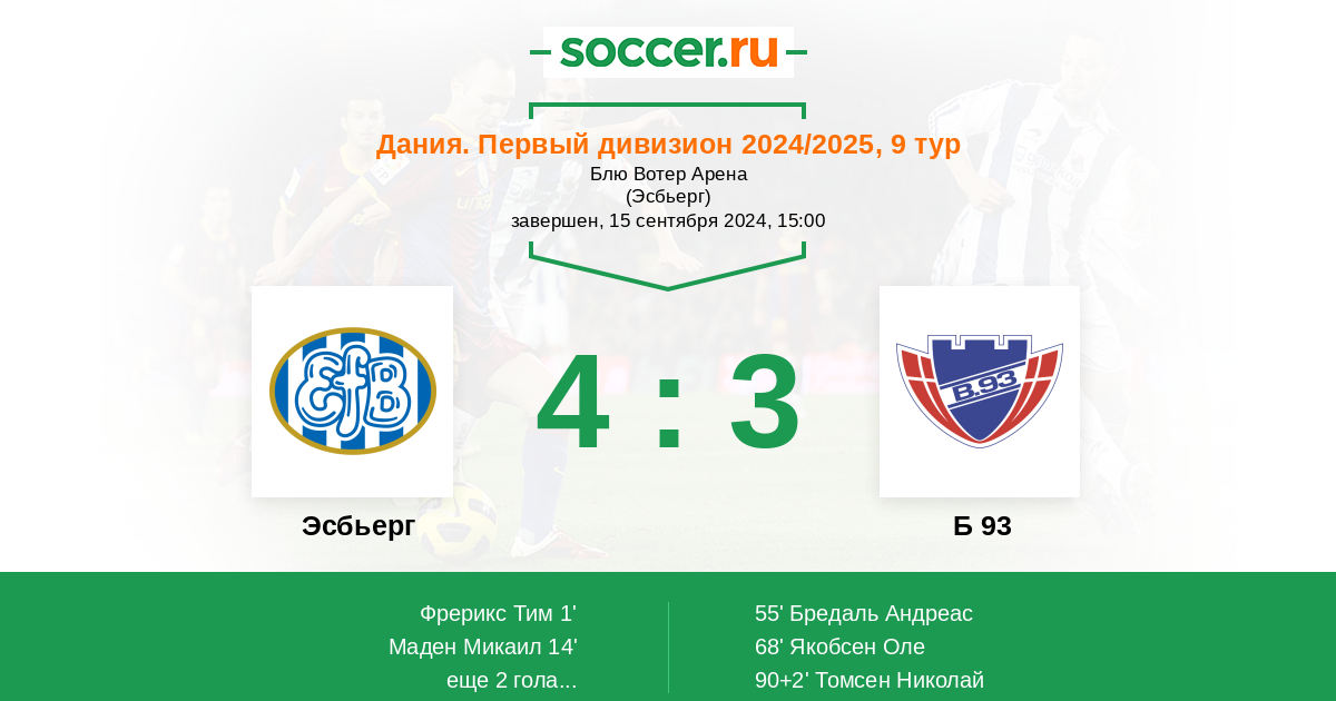 1' (1:0) Фрерикс Тим (14) (Мортенсен Йонас (2))