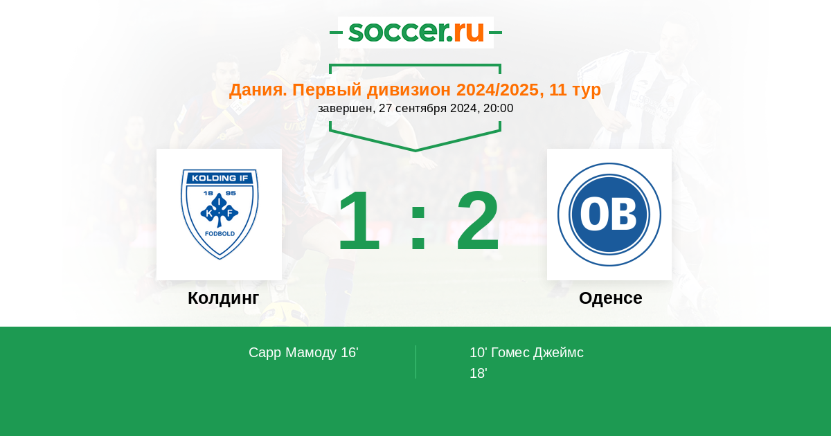 18' (1:2) W. Martin (Овусу Лирой (20))