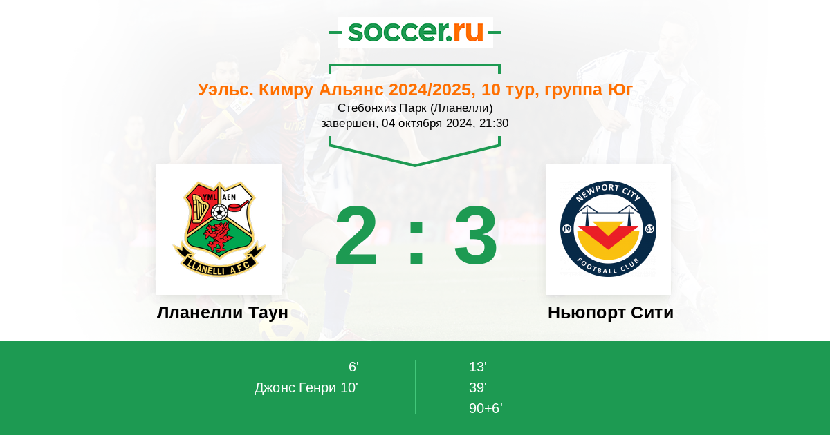 90+6’ 2:3 P. L. Gareth