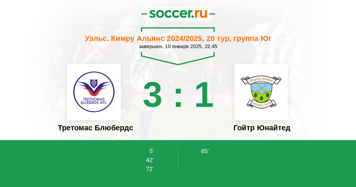 В предстоящем матче 20 - го тура валлийского Кимру Альянс между командами Третомас Блюбердс и Гойтр Юнайтед , более чем явным фаворитом на победу является команда хозяев , Третомас Блюбердс.