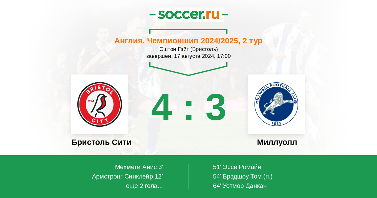 51' (2:1) Эссе Ромайн (25) (Ханимэн Джордж (39))