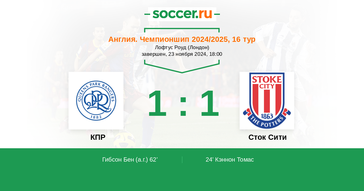 62' (1:1) Автогол Гибсон Бен (23)