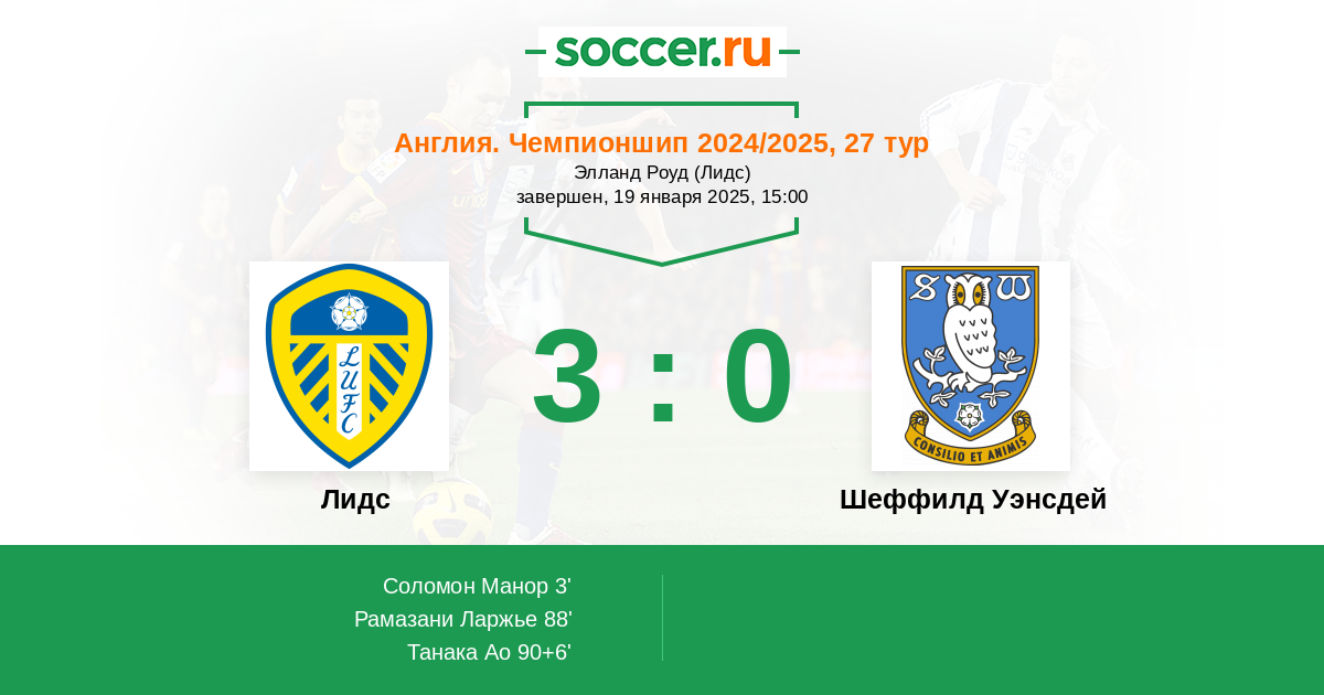 В предстоящем матче 27 - го тура английского Чемпионшипа между командами Лидс Юнайтед и Шеффилд Уенсдей , явным фаворитом на победу является команда хозяев Лидс Юнайтед , так как они играют лучше